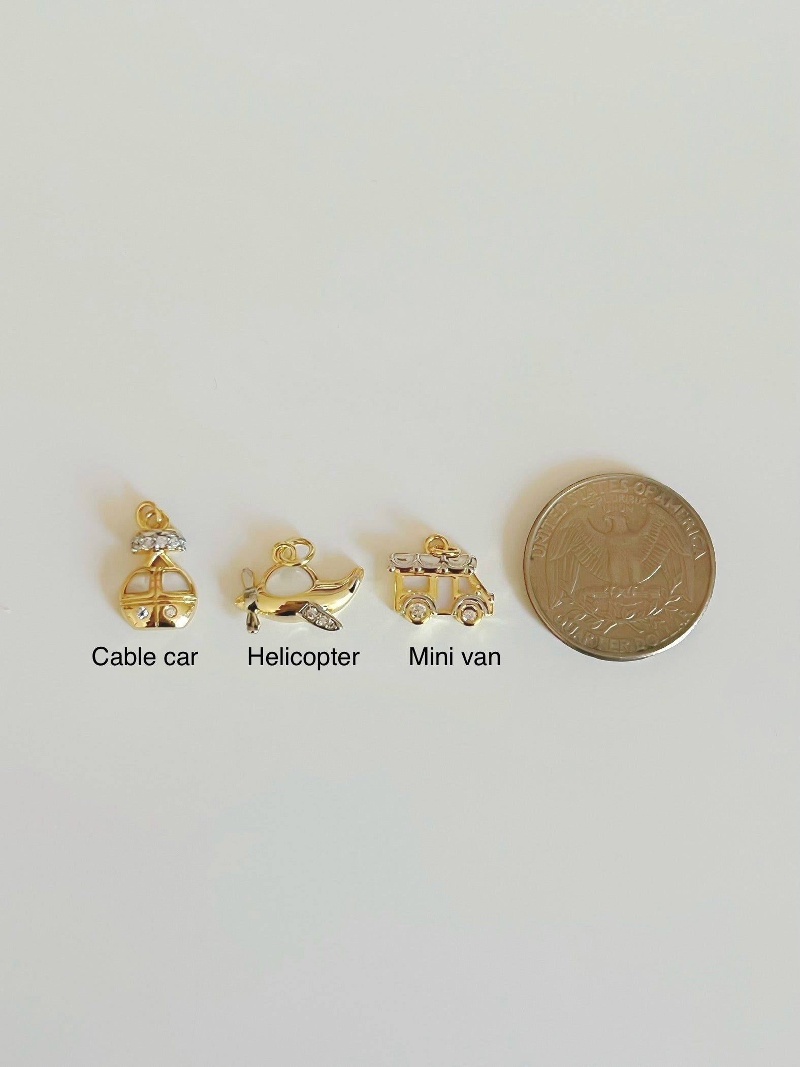 Measurements: cable car: 14mm x 10mm. Mini van: 14mm x 10mm. Helicopter: 17mm x 12mm.