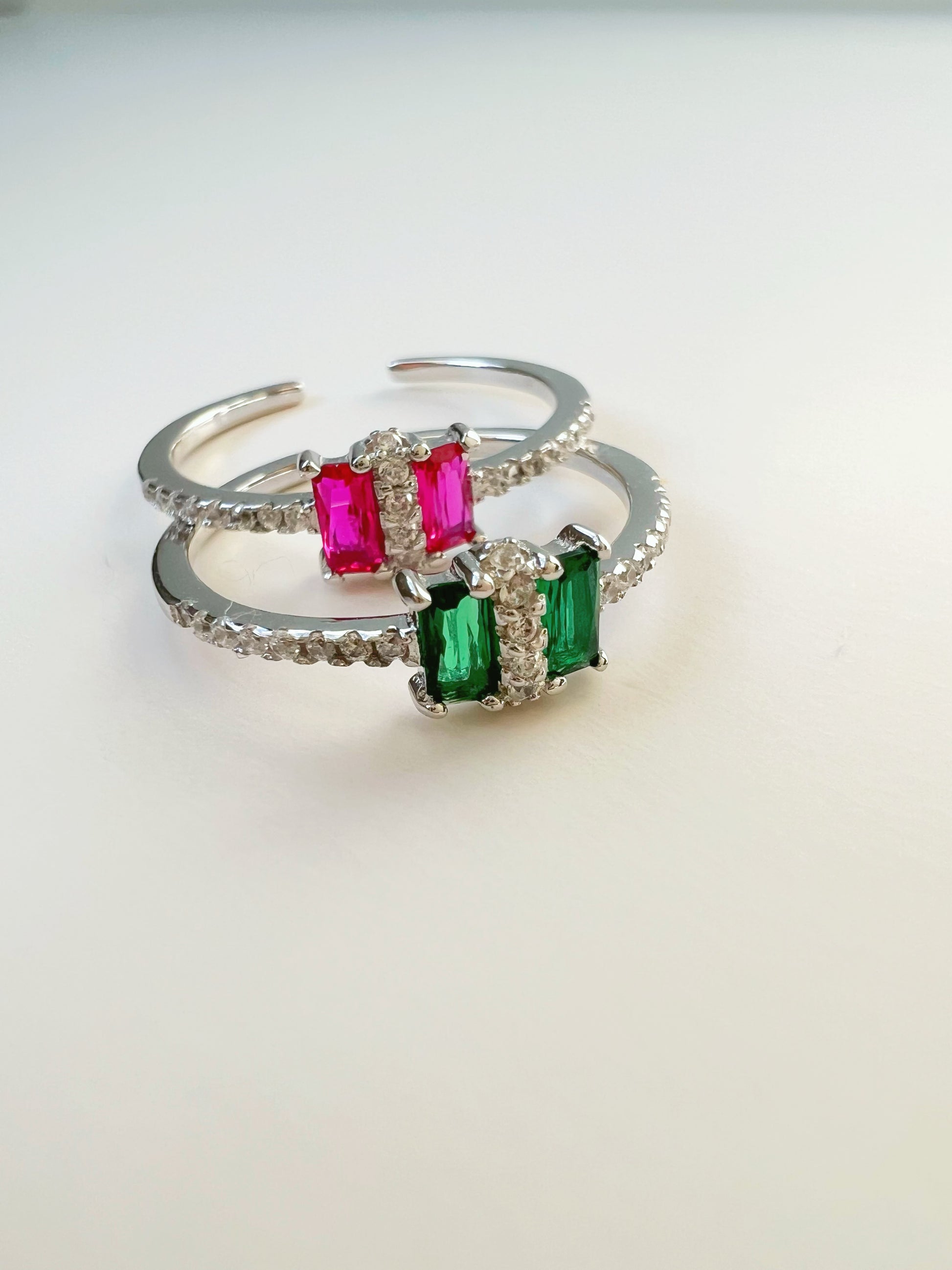 Material: 925 Sterling Silver, rhodium plated, 5A green and fuchsia cubic zirconia