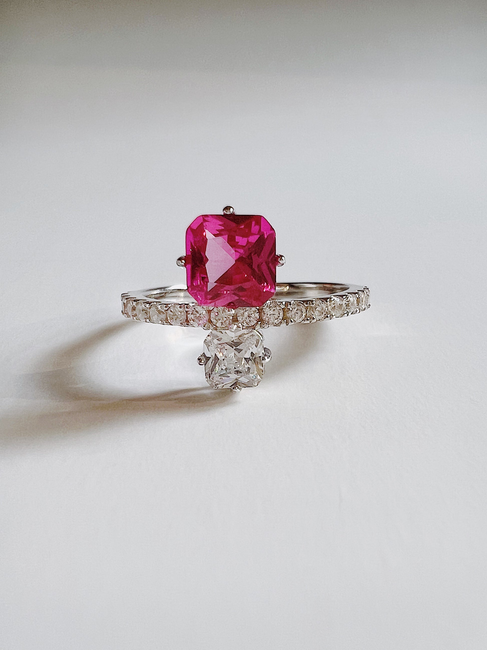 Material: 925 Sterling Silver, 5A grade clear and fuchsia cubic zirconia