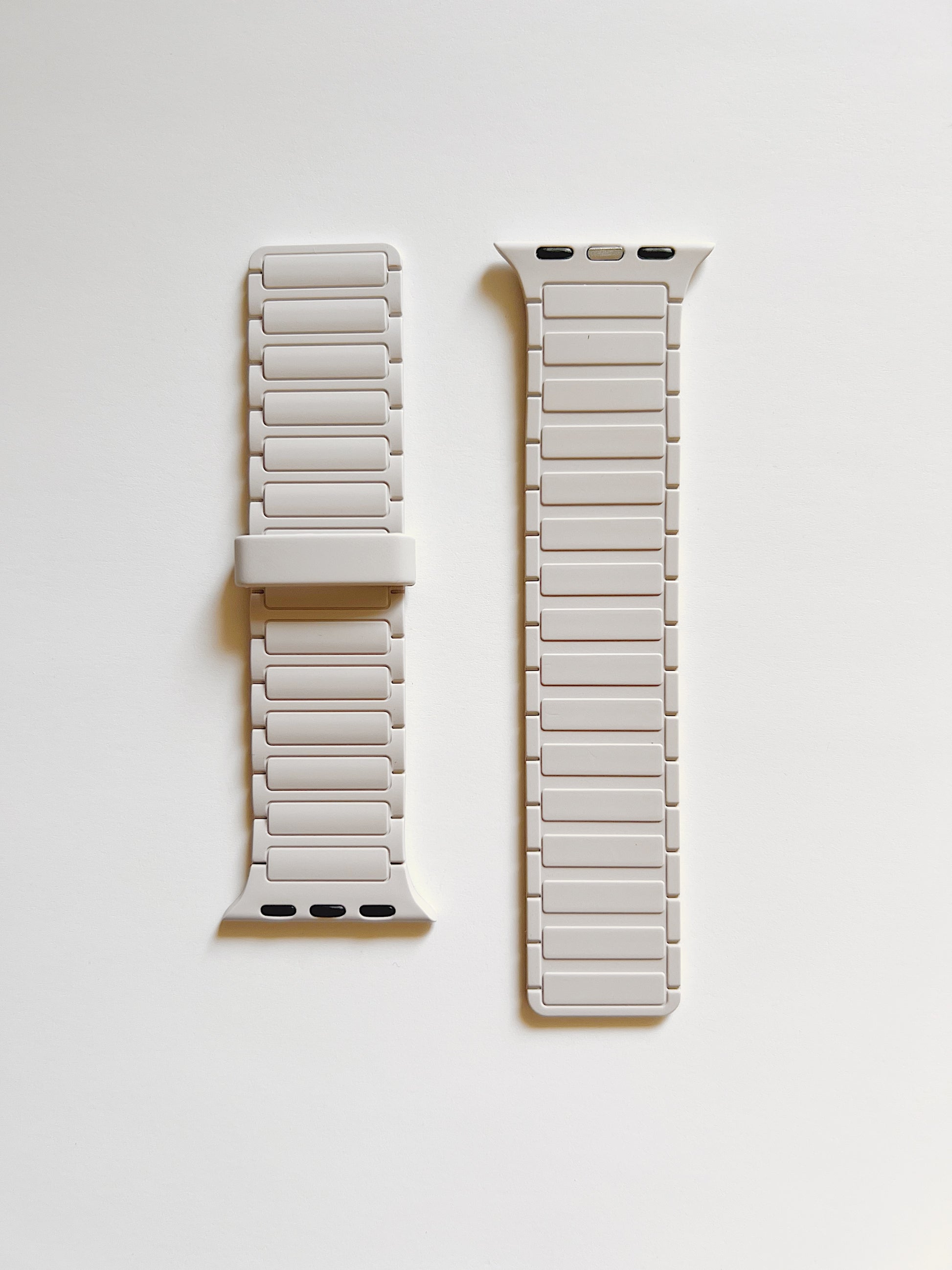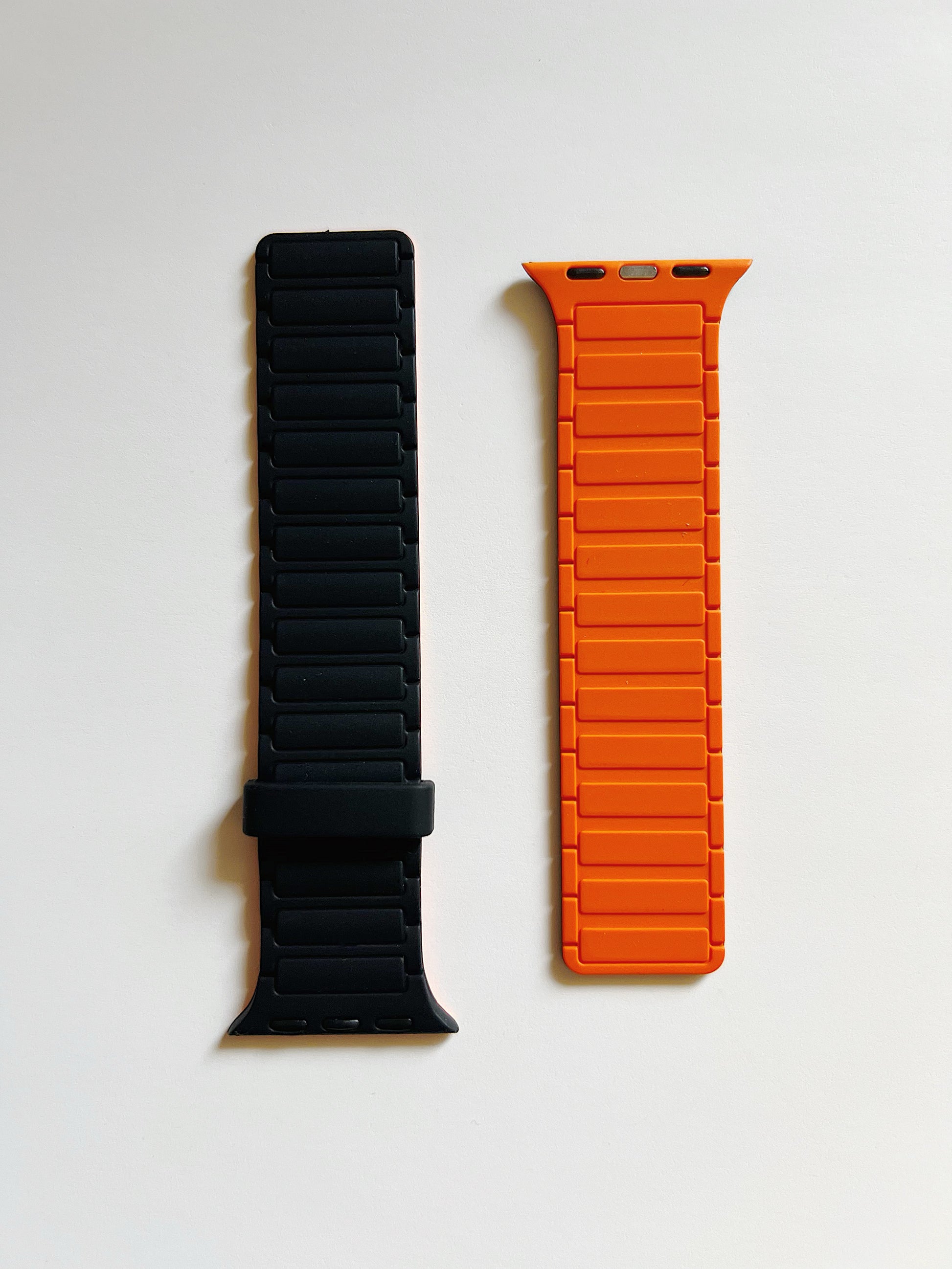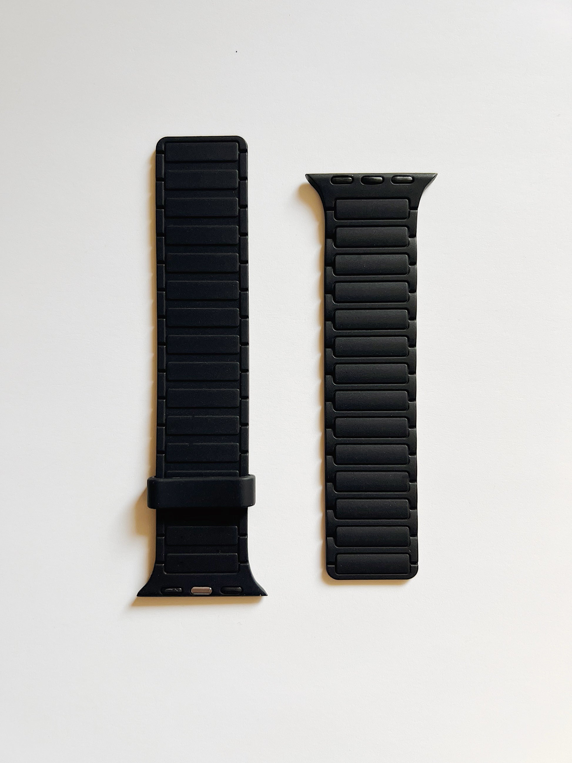 Magnetic silicone watch band compatible with Apple Watch.