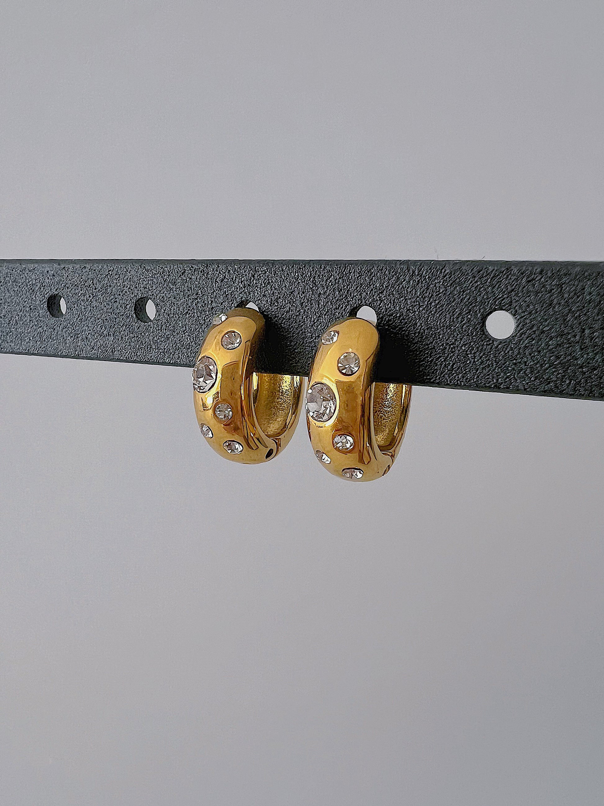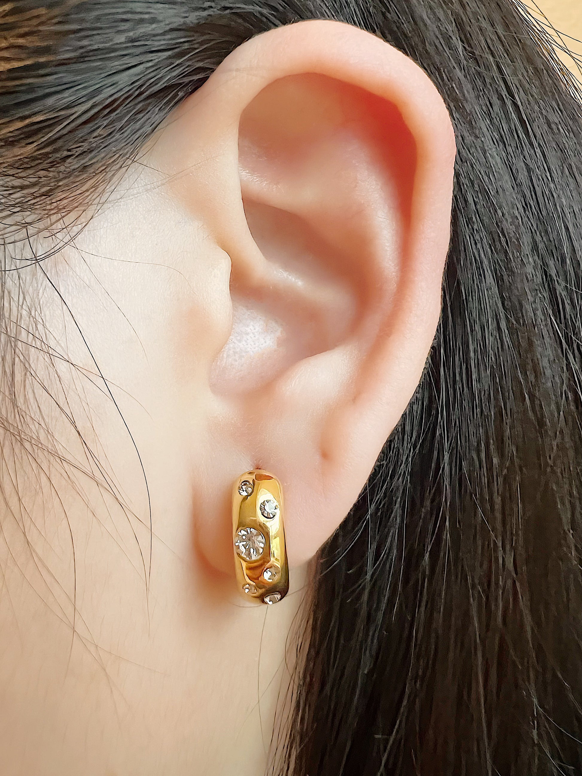 These gorgeous huggies boasts a wide design made with stainless steel. Adorned with sparkling cubic zirconia, these earrings are both casual and comfortable. Elevate your look and enjoy the benefits of effortless style.